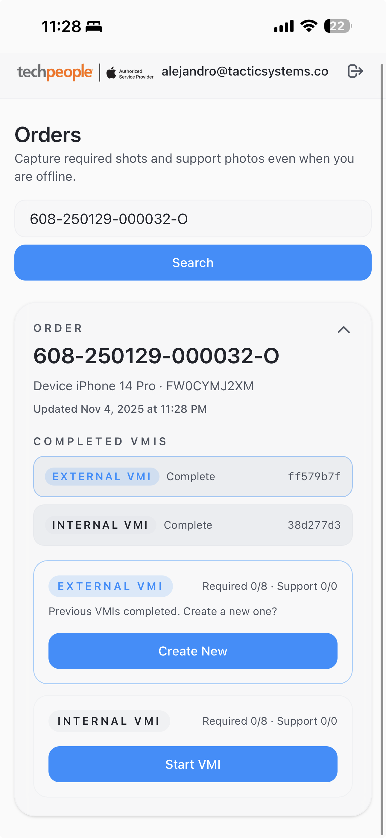 VMIS ANTERIORES COMPLETADOSSi una orden ya tiene VMIs completados anteriormente, verás una sección especial: